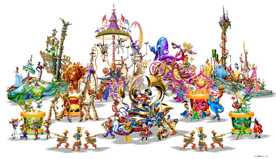 Y como muestra, basta un botón, aquí te presentamos un video con imágenes directamente filmadas en el lugar donde se estan construyendo los nuevos carros alegóricos que le darán vida a este desfile. Kirk Kusano el Director Técnico, nos comenta que los carros están construidos con materiales tales como acero, madera, fibra de vidrio y plásticos. El esculpido de los carros es hecho por computadora, y una máquina corta los moldes directamente. Kirk dice que ha sido un proceso muy largo desde los primeros dibujos hasta el producto final, pero esta muy contento de muy pronto poder mostrarlo a los visitantes de Disneylandia.