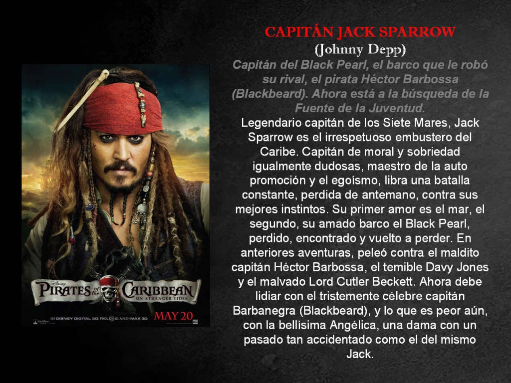 ¿Estas alistándote para el super regreso de los Piratas?   Así es, Los Piratas del Caribe: Navegando Aguas Misteriosas llega a cines el 20 de Mayo, checa los detalles aquí.  Y en los siguientes cuatro sábados empezando por hoy te vamos a traer a los personajes para que te vayas familiarizando con ellos.  Hoy por supuesto que tenemos que empezar con CAPITÁN JACK SPARROW: