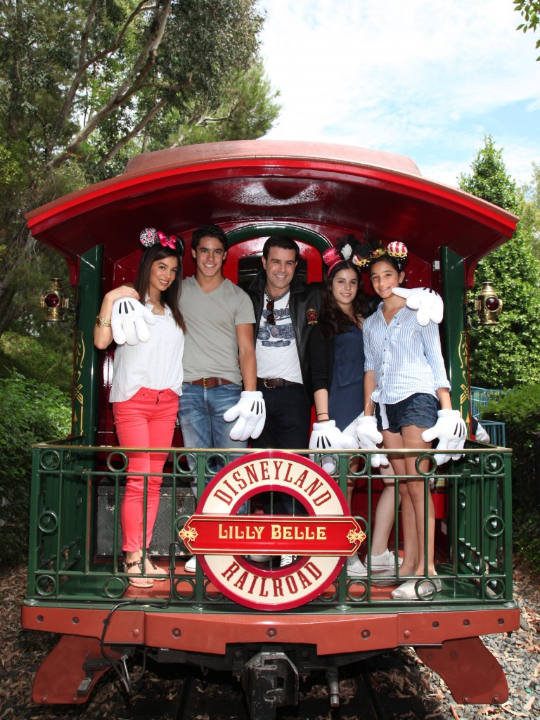 El actor y cantante Eduardo Capetillo y su esposa Bibí Gaytán posan en compañía de sus hijos, Eduardo Jr. de 17 años, Ana Paula de 15 años y Alejandra de 12 años, en el clásico vagón privado de Walt Disney, el Lilly Belle, en Disneylandia!