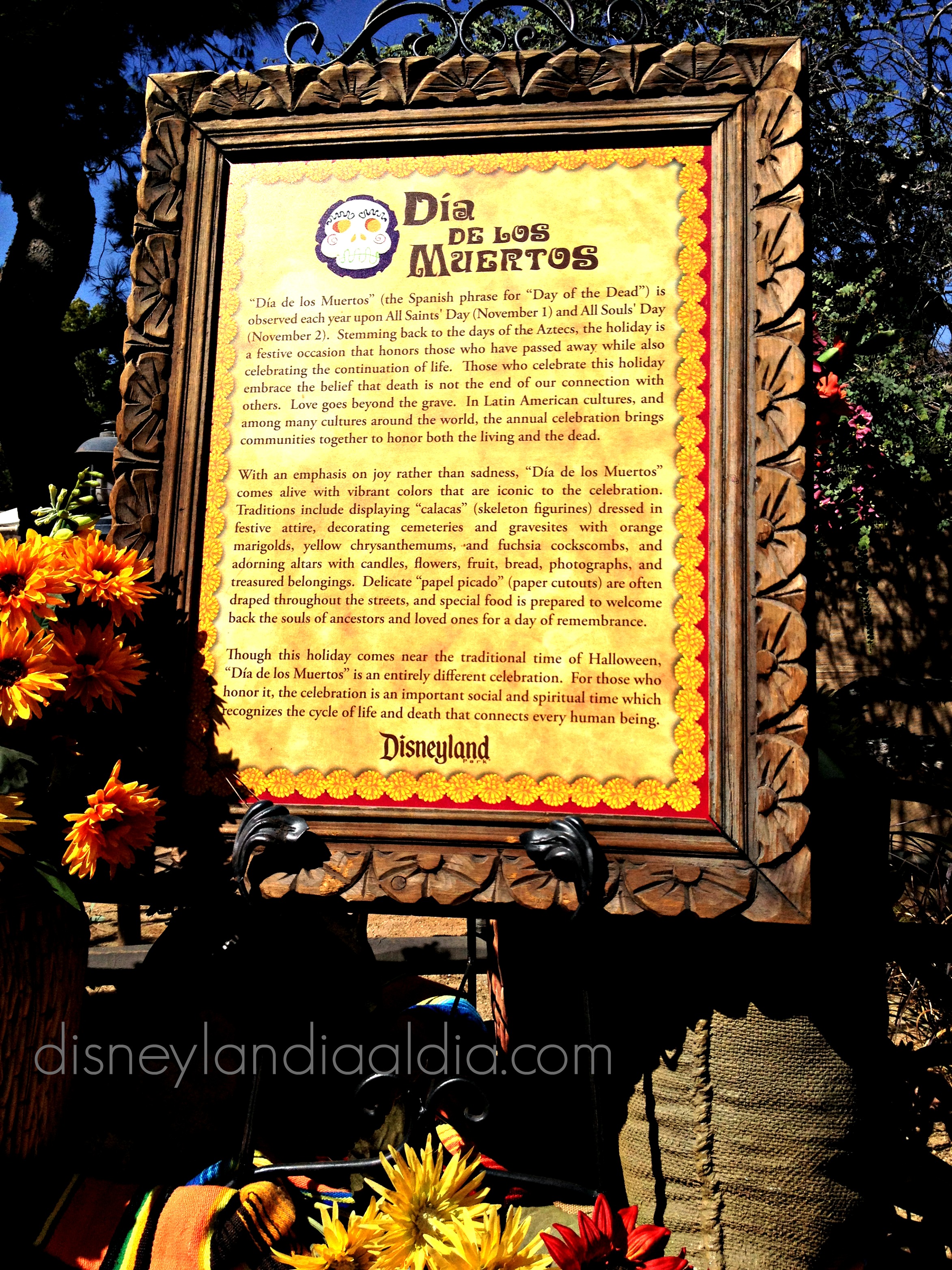 Para todos aquellos visitantes que no saben del Día de Muertos, hay esta placa especial donde podemos leer su significado.