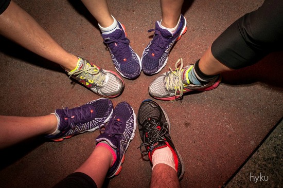 Pies unidos con zapatos New Balance a las 5:30 de la mañana