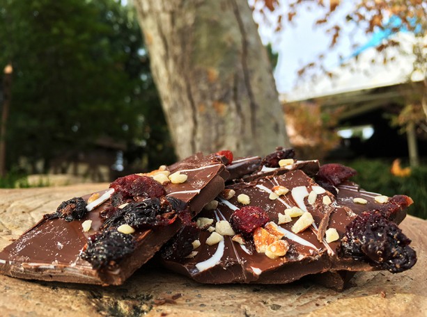 Esta palanqueta, la cual se llama Bark en inglés, está hecha de chocolate, pero no sólo eso, tiene una infusión de nueces y amareto y está cubierta de chocolate blanco, chocolate de leche, cerezas secas y almendras tostadas. ¡Una delicia!