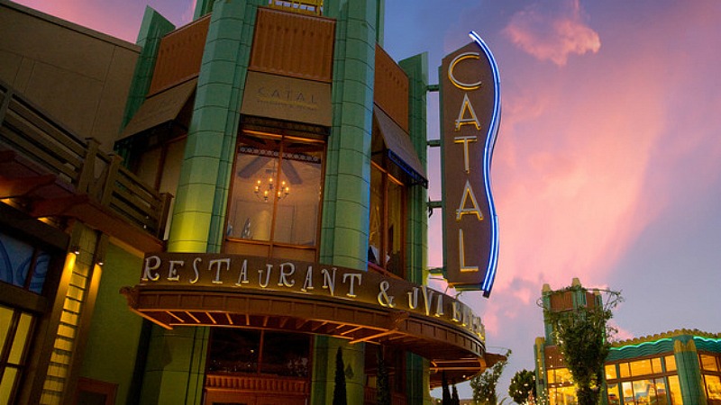 El restaurante Catal se encuentra en Disney Downtown Disney que es la zona de entretenimiento fuera de los parques. La ventaja es que no necesitas comprar boleto para los parques, sólo estaciónate y camina por la alegre calle principal. Catal se encuentra casi en el centro del Distrito, verás su nombre desplegado claramente. Su especialidad es la comida mediterránea, encontrarás elegantes y deliciosos platillos con mariscos, carnes, hamburguesas, ensaladas y hasta paella.