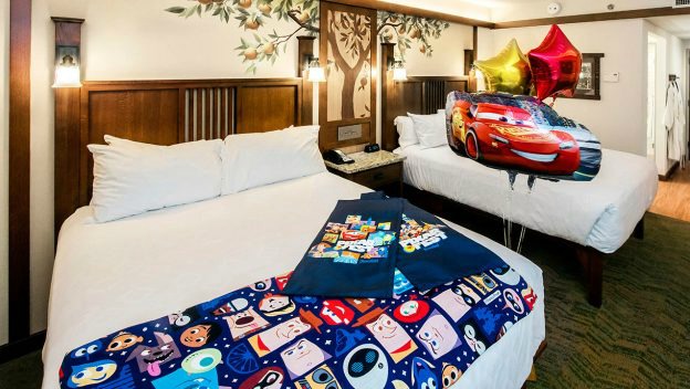 Cuando compras boletos de 2 días o más para los parques y reservas en el Disney’s Grand Californian Hotel & Spa o Disneyland Hotel recibirás una sorpresa. Tu habitación estará decorada completamente de pixar incluyendo una bandera en tu puerta, globos, una cobija temática y un poster de edición limitada de Pixar Fest.